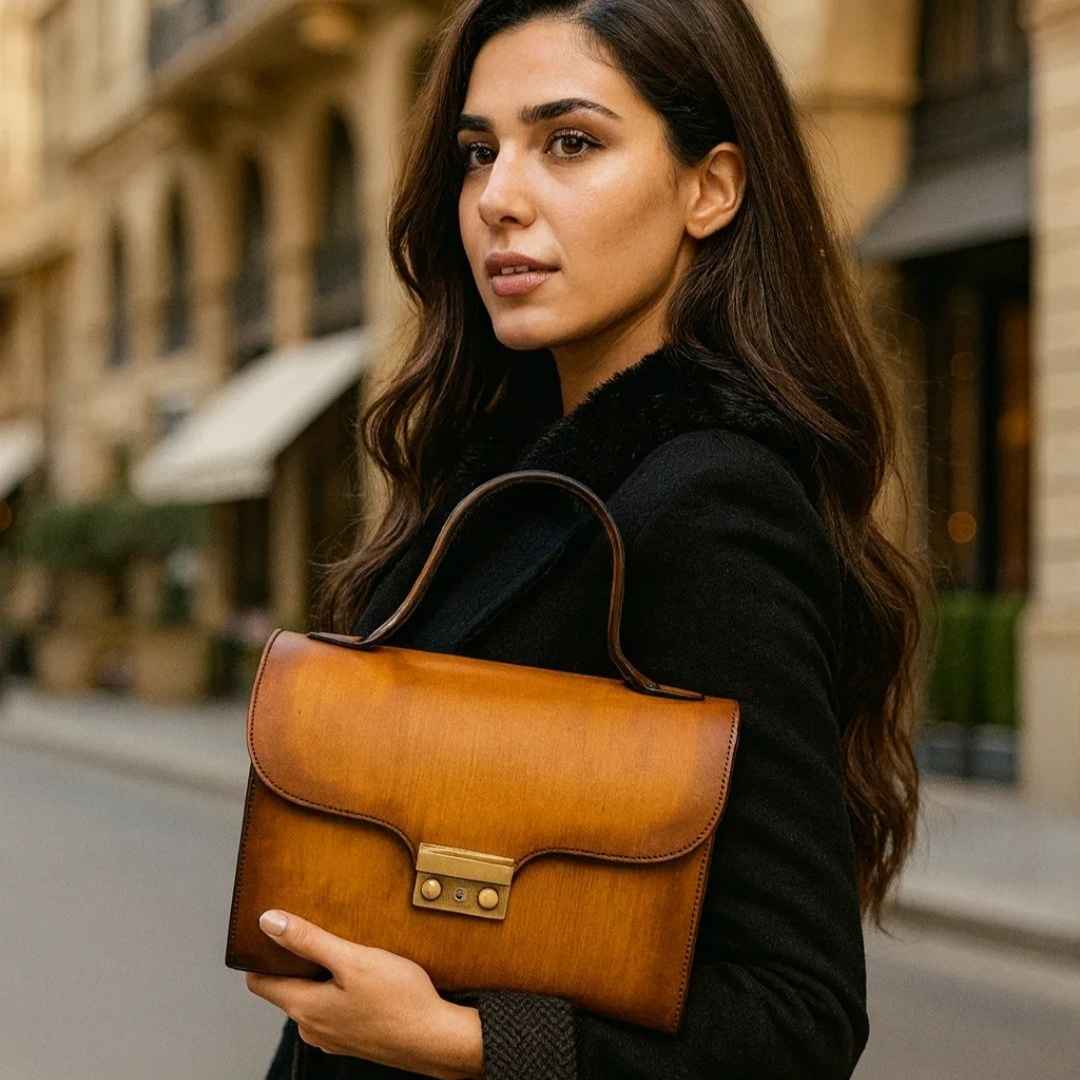 Genuine Leather Handbag with Hand-Finished Patina