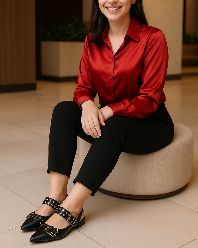 استمتعي بالأناقة والراحة مع شوز البالرينا الحريمي 417. مصنوع من مواد عالية الجودة، مما يمنحه لمسة من الرقي والفخامة. مثالي لأي مناسبة.